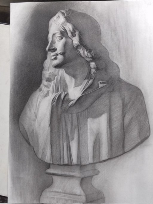 #今月描いた絵を晒そう モリエールの石膏像。 海外によくある、必要最低限の要素だけでサラッと描くスタイルを試してみた。