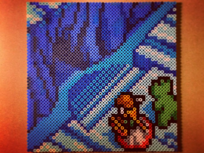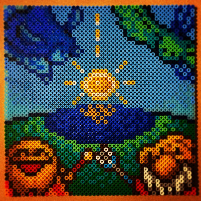 キレイな絵だろ? コレ29年前のファミコンのドット絵なんだぜ と言うわけで、29年前の本日発売された メタルスレイダーグローリーの超絶美しい画面を作りました。 文句なしの一発アイロンだぜ #メタルスレイダーグローリー #ファミコン #NES #ドット絵 #pixcel #アイロンビーズ #ミニフューズビーズ