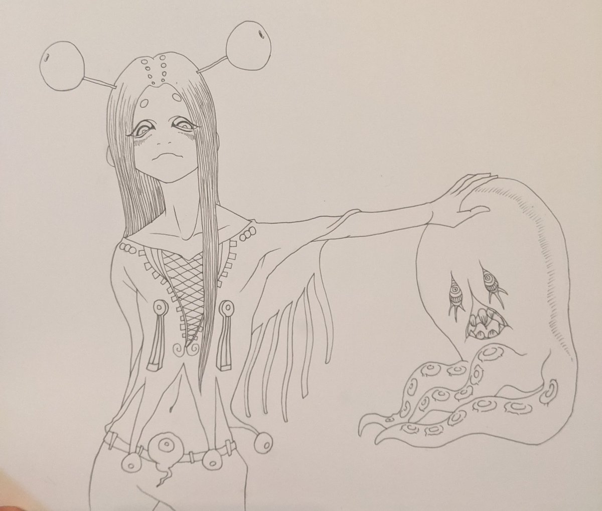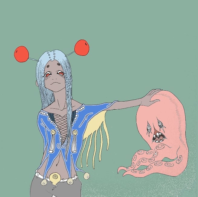 人型エイリアンとパラサイト 色塗りってムズカシイ。。 #アナログ絵 #アナログイラスト #イラスト #イラストグラム #illustration #illustagram #絵柄が好みって人がいればいいなぁ #artgallery #originalcharacter #エイリアン