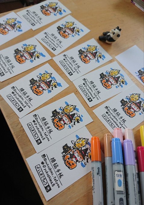 0 6 名刺にコピック直塗りなんて、他にいるだろうか…… 手元が狂ってきたのでお昼の準備にしよう🍲 #消しゴムはんこ #けしはん #ほるナビ #コピック 22/10/04 11:23