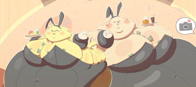 15 45 描き初め&肉の日絵!!コレはバイト先のバニー服カフェで、撮影に応じるロイくんとおのぼりくんと…?🐱💦🐶✨📷💥💥💥 23/01/29 00:00