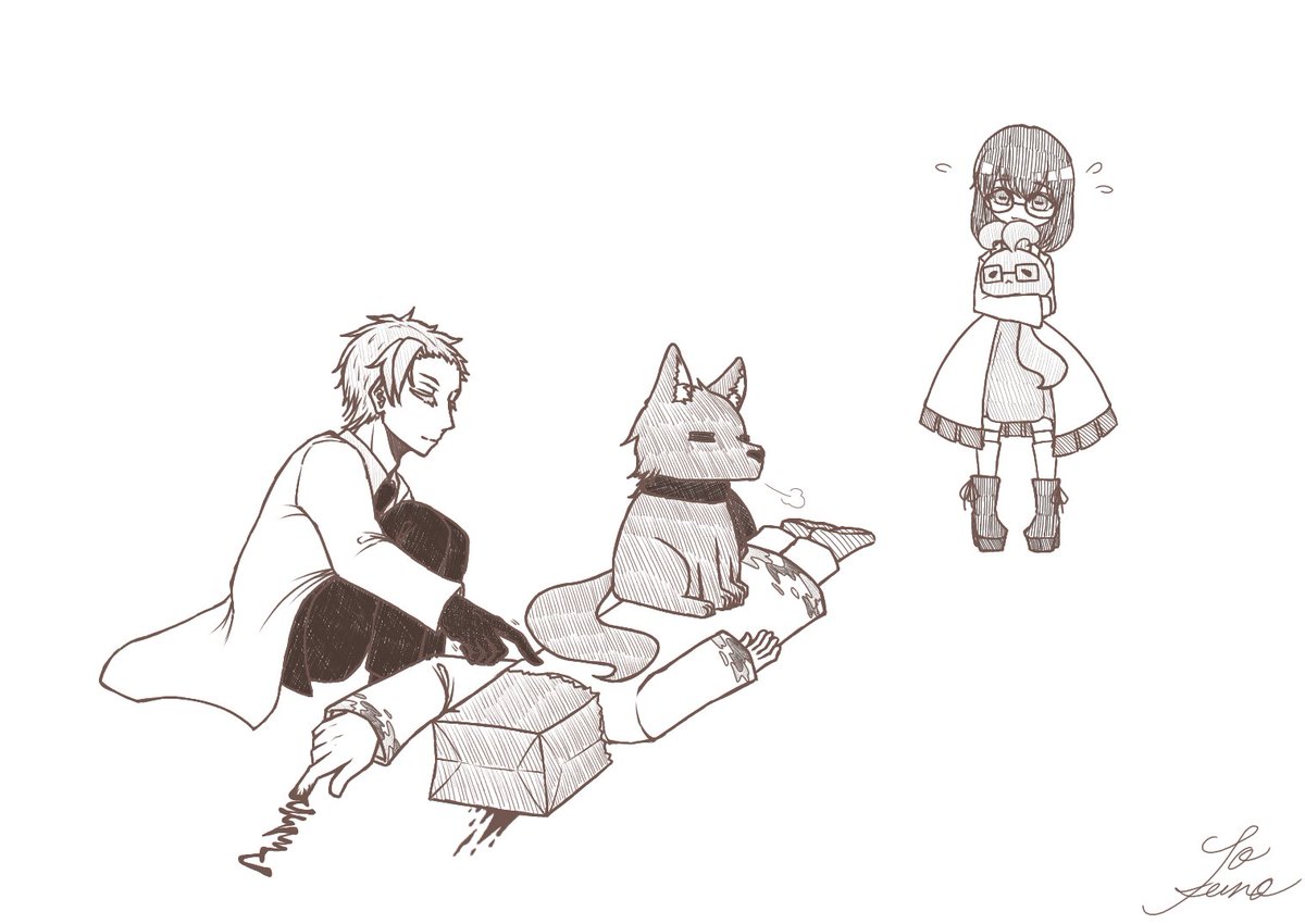 #イラスト総研絵日誌 #いらすとそうけんえにっき 落描き( ◜ω◝ ) とある日の出来事。 研究員「主任…その背中のは…」 相良「所長だよ?」 研究員「…e?」 相良「所長(即答)」 ヨクノ「…………なに」