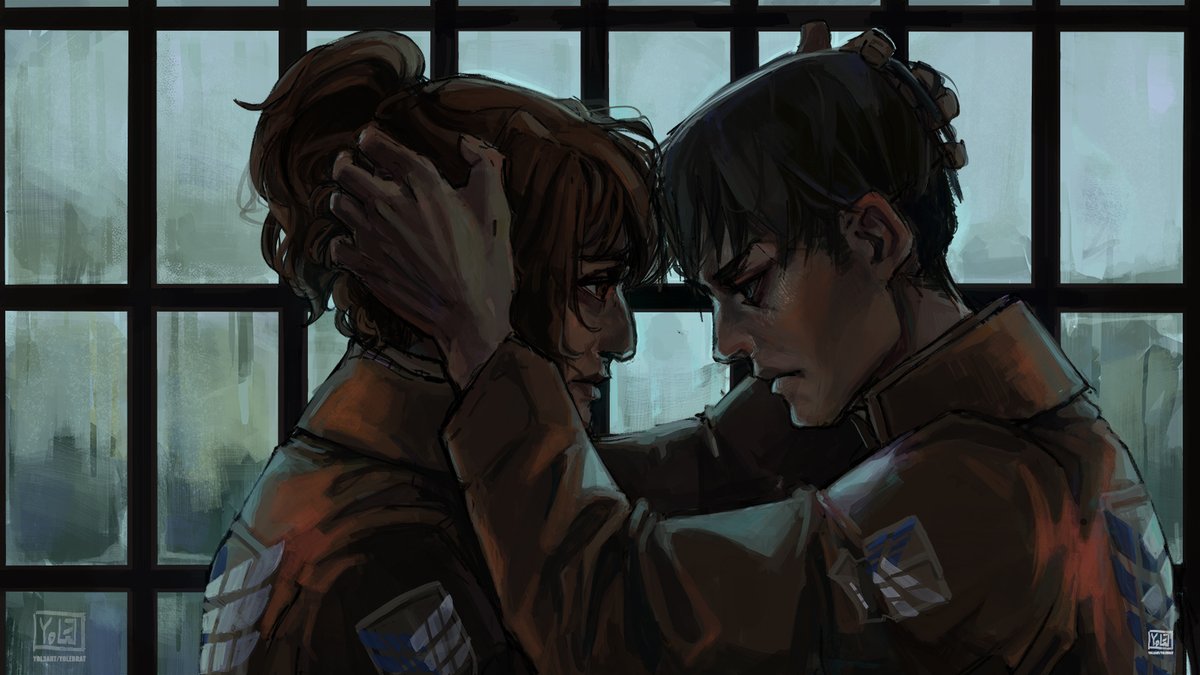 Here is some more LeviHan angst, because in this house we fight fire with fire. (looking back these foggy windows remind me of boiling potatoes ...I want some) #levihan #ShingekiNoKyojin #leviackerman #hangezoe #AttackOnTitan #fanart #artistsontwitter