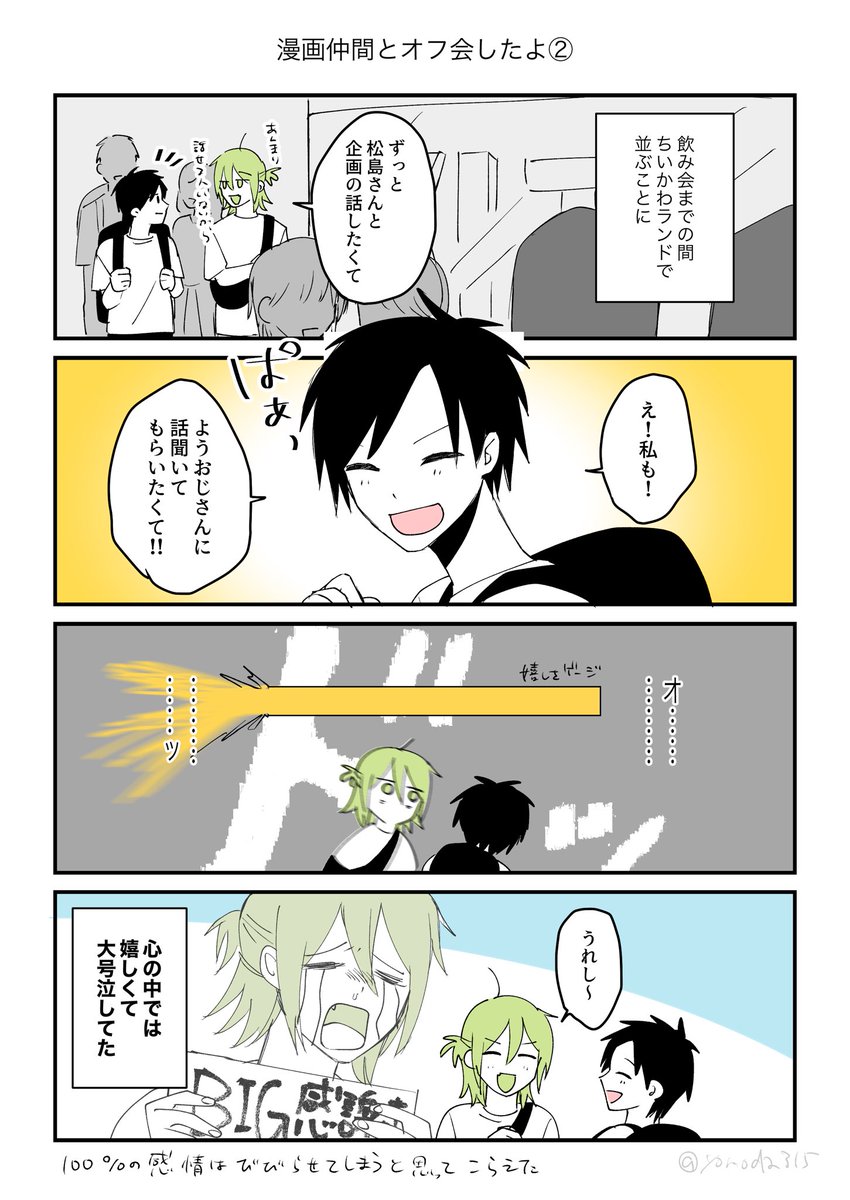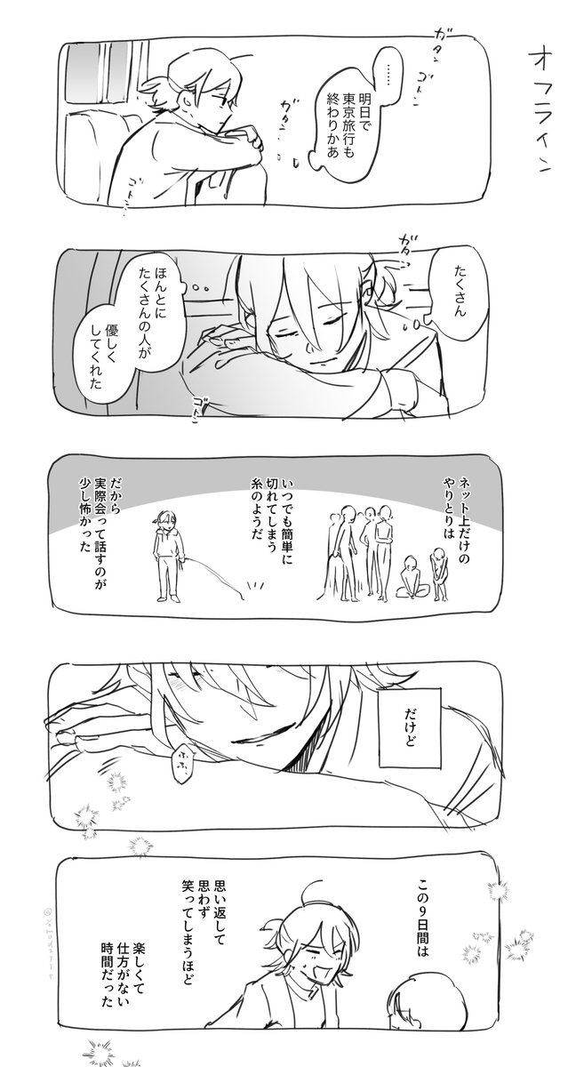 関西で漫画仲間とオフ会した時のマンガその2です。 悩みを話し合える仲の人が少ないので帰り道ずっと(嬉しかったな…)と噛み締めていたやつ。 #コルクラボマンガ専科 #漫画が読めるハッシュタグ