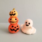 三段ハロウィンかぼちゃとおばけ。 おばけは2種類あります。 #羊毛フェルト #ハンドメイド #ジャックオランタン #minne minne.com/items/33835209 minne.com/items/33835182 minne.com/items/33835080