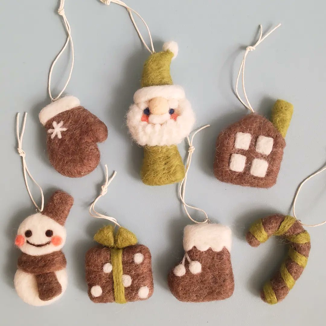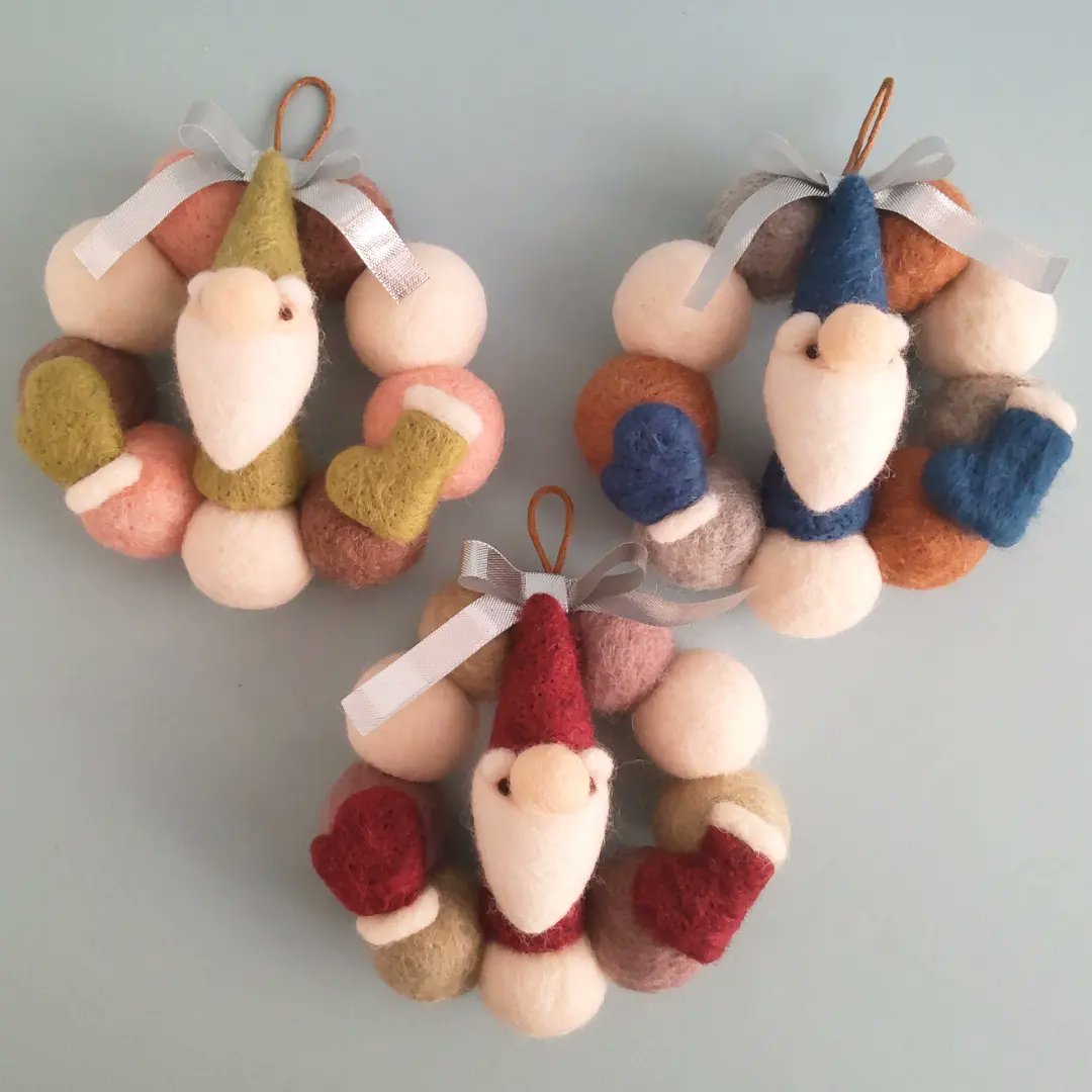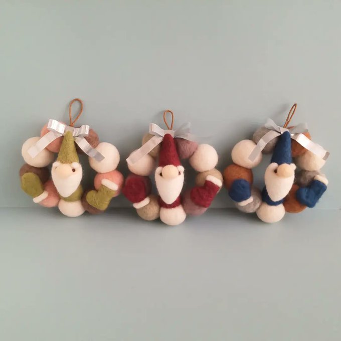 クリスマスオーナメント7個セット、2種類再販しています。 #羊毛フェルト #ハンドメイド #minne minne.com/items/20569330 minne.com/items/20569269