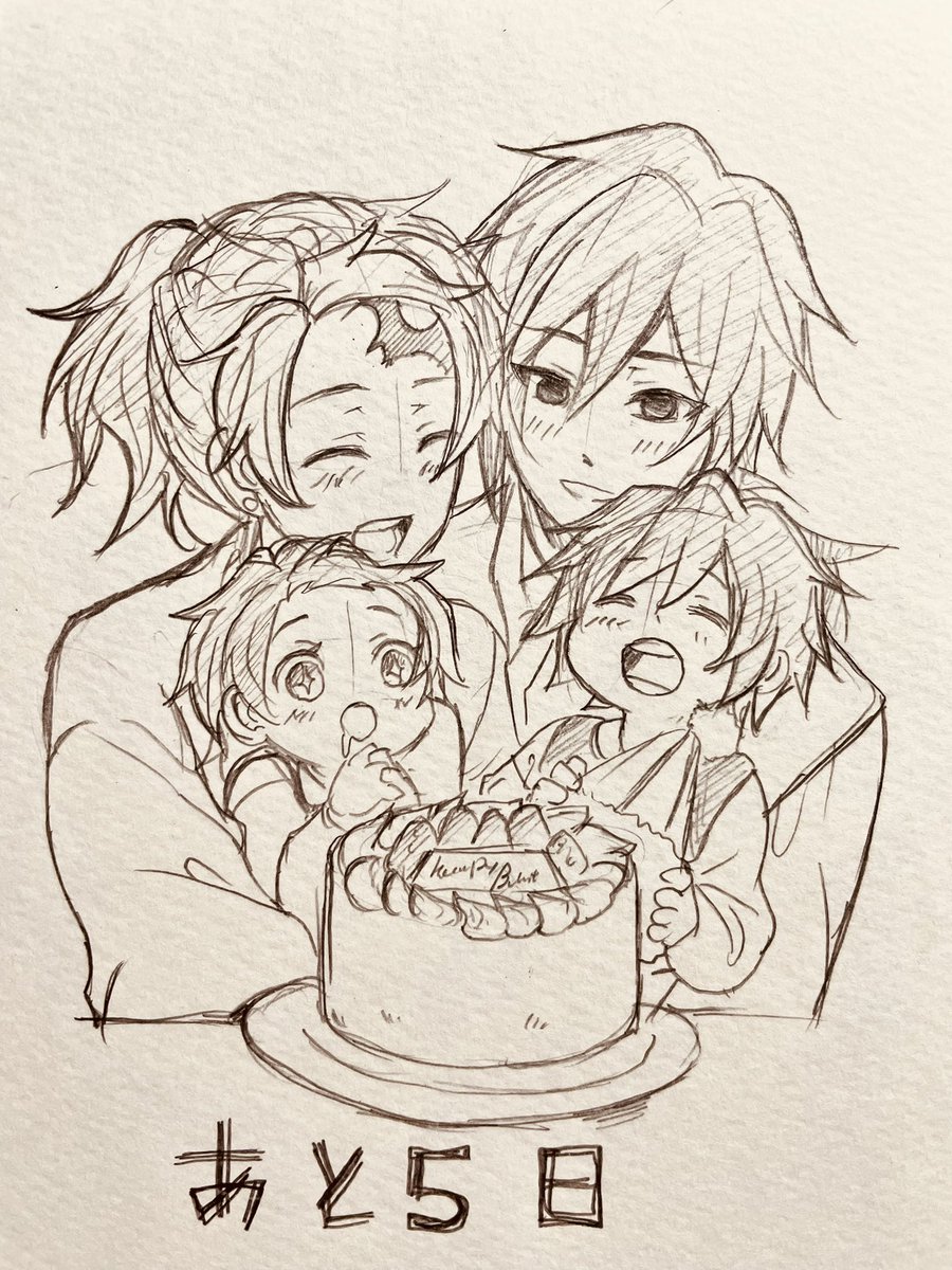 #義炭によるぎゆさん誕生祭2022 あと5日‼️ 義勇さん35歳、炭治郎25歳 炭治郎「今年は子供達と一緒にケーキをデコレーションしたんですよ❣️」 長男「イチゴ並べるのがんばったよ❗️」 長女(早くたべたい✨) 義勇「皆ありがとう」