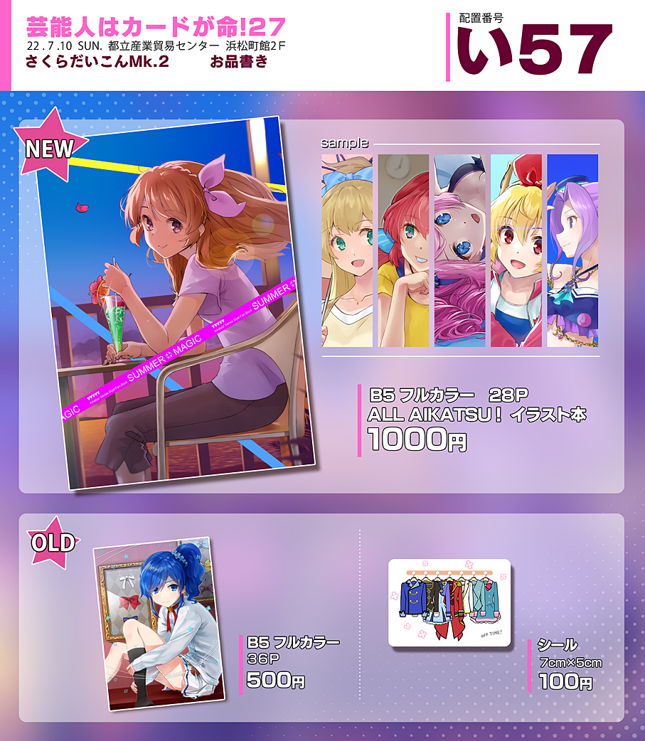 芸カ28のお品書き作りました!アイカツ!よろずイラスト本です。近くを通りかかった際は是非! #芸カ28 #芸カ28お品書き