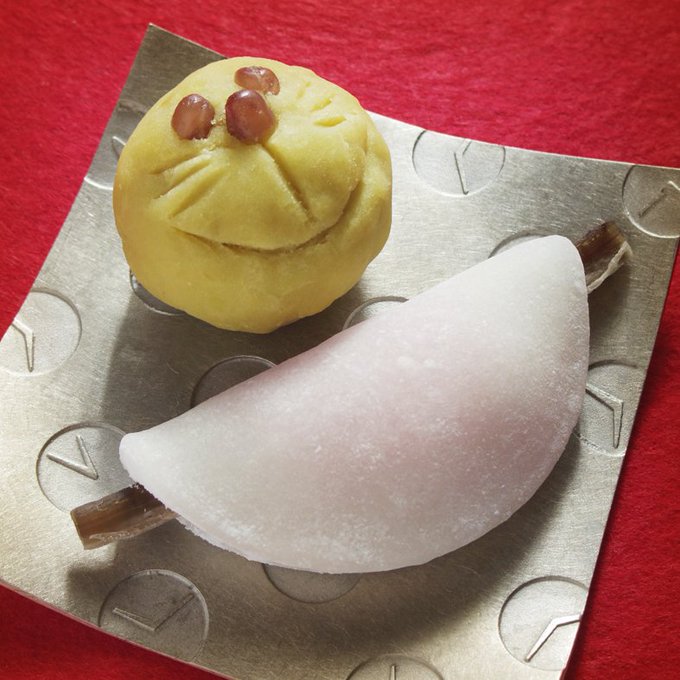 ポポンにしたかったけどできなかった花びら餅とドラえもんきんとん。 #ドラえもん #栗きんとん #花びら餅