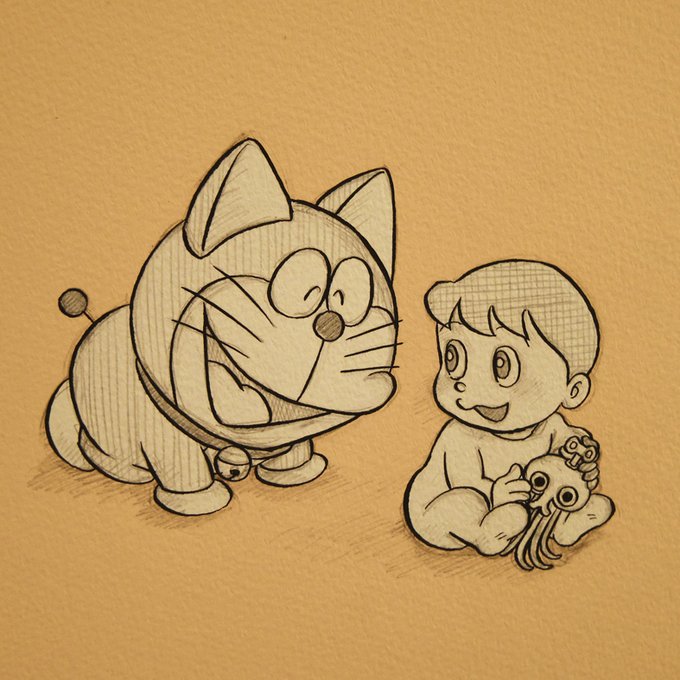 ドラめくりを見るまで忘れていたのですが…… 1月19日は、2115年にドラえもんとセワシくんが初めて会う日ということで、きっとその日は幸せな日なんだろうな……という想像♪ #ドラえもん #セワシ #おもいでのアルバム