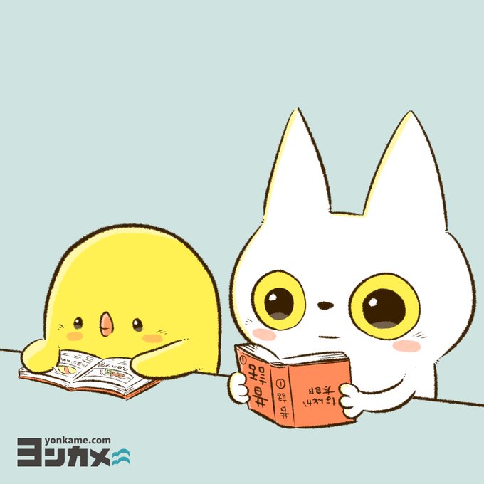 2 29 読書しているっぽい ヒヨコのピコ、ネコのニコ #イラスト #ひよこ #猫 #読書 #モコニコピコ 23/03/20 06:30