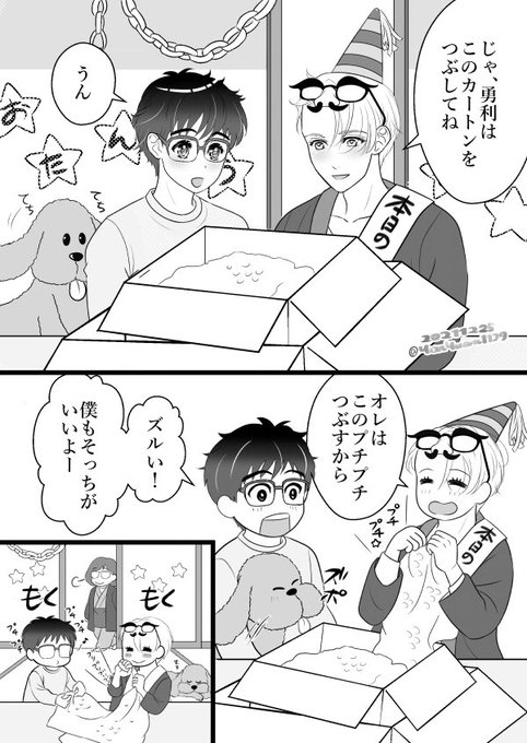 ヴィクトルお誕生日おめでとう~✨🎂🎉🎊✨👏✨ はせつのご実家で、誕生日パーティしてもらった後、会場の片付けをしている師弟です。 #ヴィクトル・ニキフォロフ誕生祭2021 #ヴィクトル・ニキフォロフ生誕祭2021