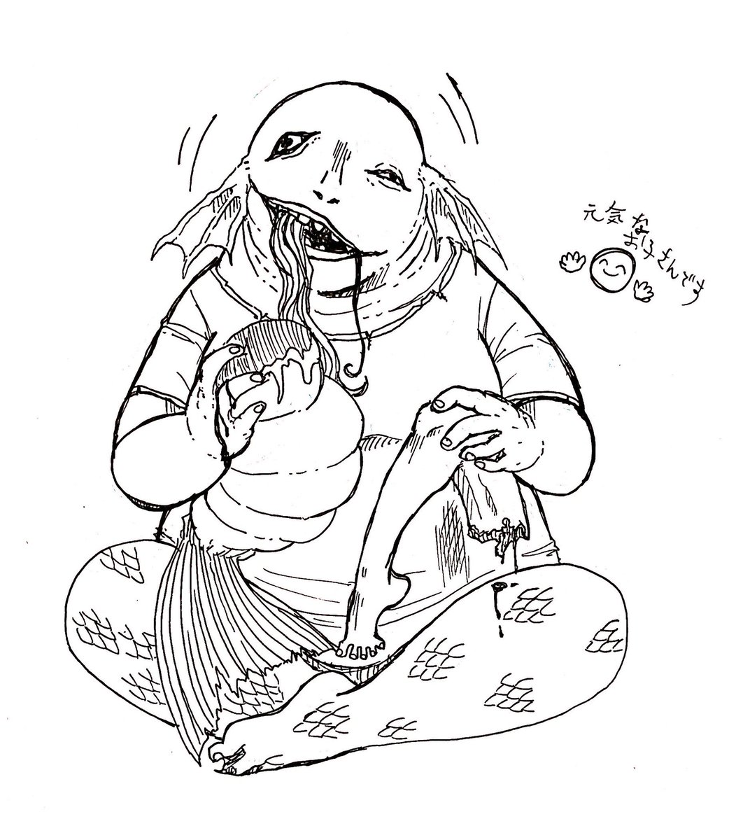 【らくがき もしかしたら注意】にんぎょのこどもは たいへんよくたべる こどもでした☺️