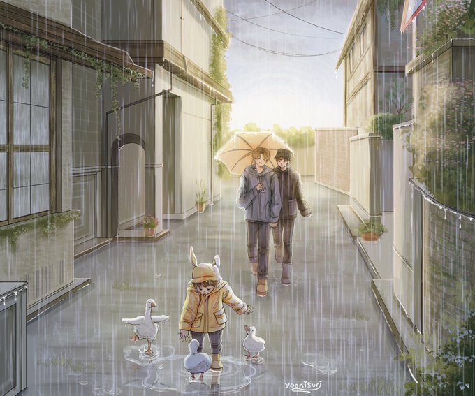 jungkook's first duck encounter 🐿🐱🐰🤍☔️🐤 #sope #sopefanart #sopekook #yoonseok #btsfanart #artistsontwitter #procreate #솝