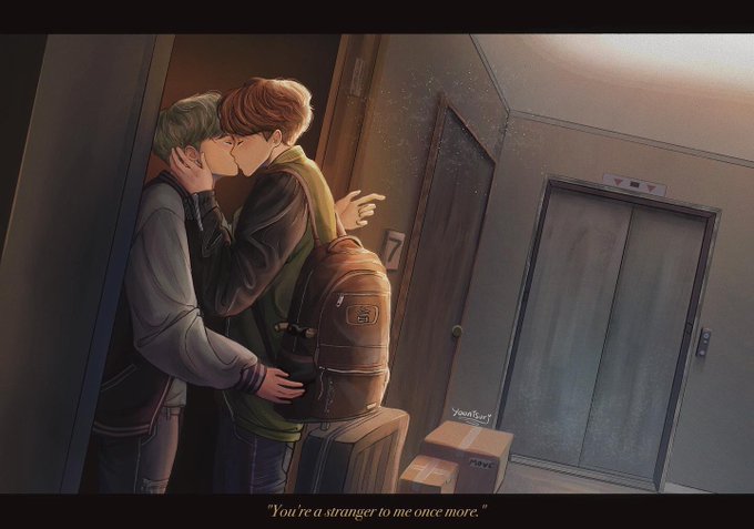 you came to get your stuff and leave me behind as a stranger, with only your kiss lingering on my lips 🐱🐿🧳⌛️ #sope #sopefanart #yoonseok #btsfanart #hyyh #솝 #procreate #procreateart #artistsontwitter #digitalpainting #digitalart #kpopfanart