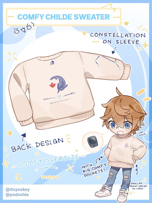 ✨🌸✨ so... HEY GIRLIE 🌸✨💦 CHILDE SWEATER INTEREST CHECK? 💦⭐️ super comfy and oversized with pockets! FAT POCKETS design by me and @podoshia Please feel free to leave comments/questions below ~ (RTs appreciated)! #GenshinImpact #原神