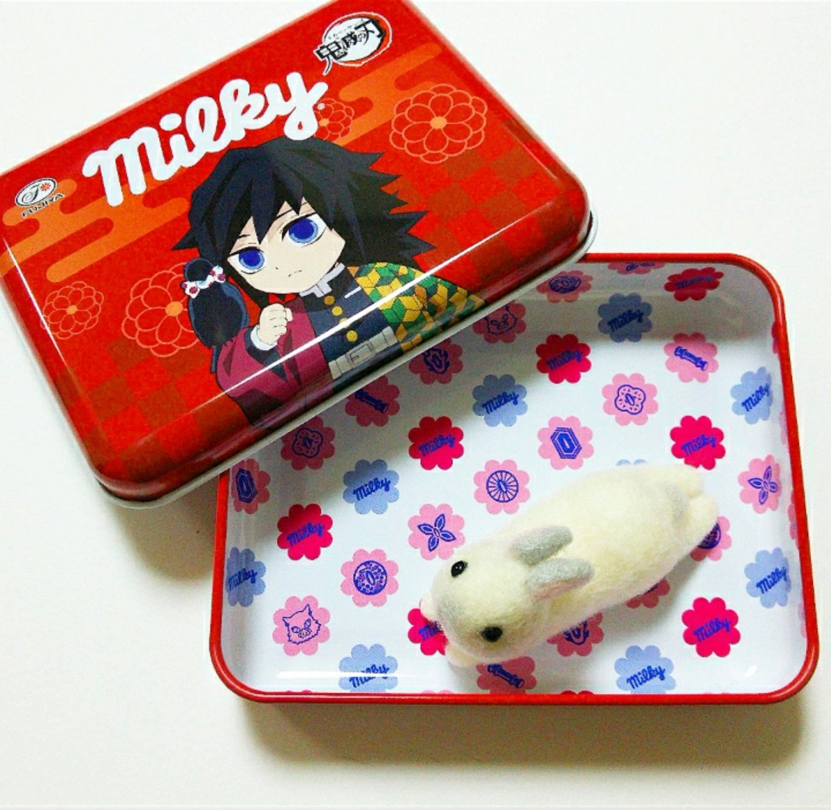 ひんやり #羊毛フェルト #うさぎ #富岡義勇 #鬼滅の刃 #ミルキー缶 #ぬい撮り