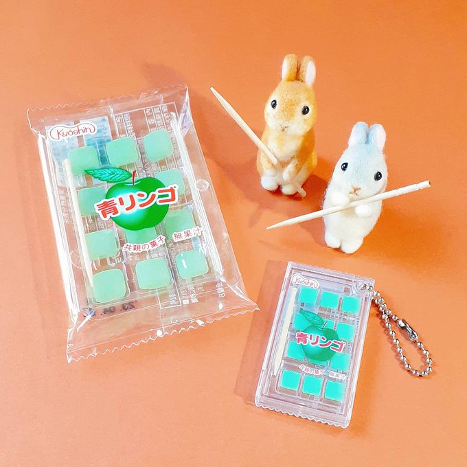 餅飴の駄菓子🍏 #うさぎ #羊毛フェルト #駄菓子 #ガチャガチャ