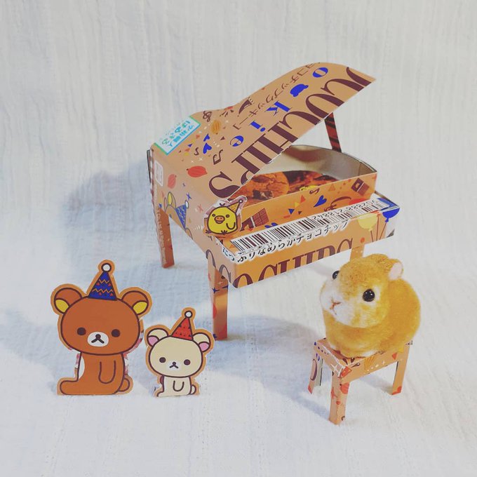 森永ビスケットの箱でピアノを作ったよ🍪 #羊毛フェルト #うさぎ #森永ビスケット #リラックマ