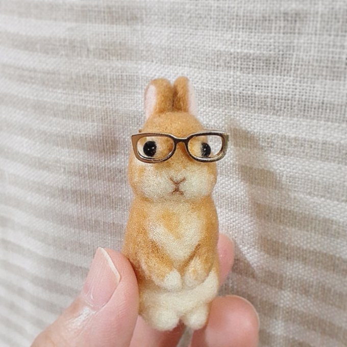 0 1 100均のメガネの指輪👓 #うさぎ #羊毛フェルト 23/05/28 13:32