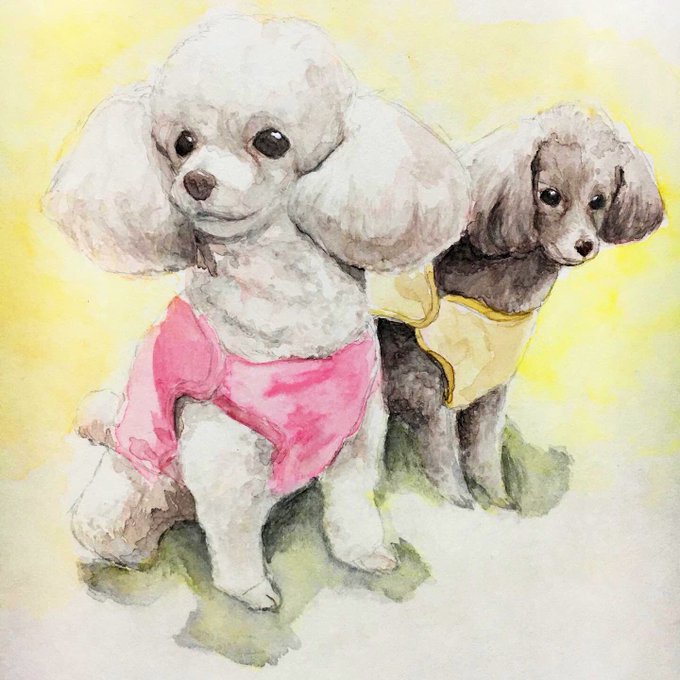 最近、水彩画にハマってます🎨✨ 我が家の愛犬達描きました🐩🐩