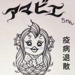 やっぱり、エビでは疫病退散に 効果無いかな~と 気になっていたので😅 ✏️アマビエちゃん描きました 早く普通の日々が戻りますように 祈ります🙏 #チェブラーシカ #よぴ家の日常