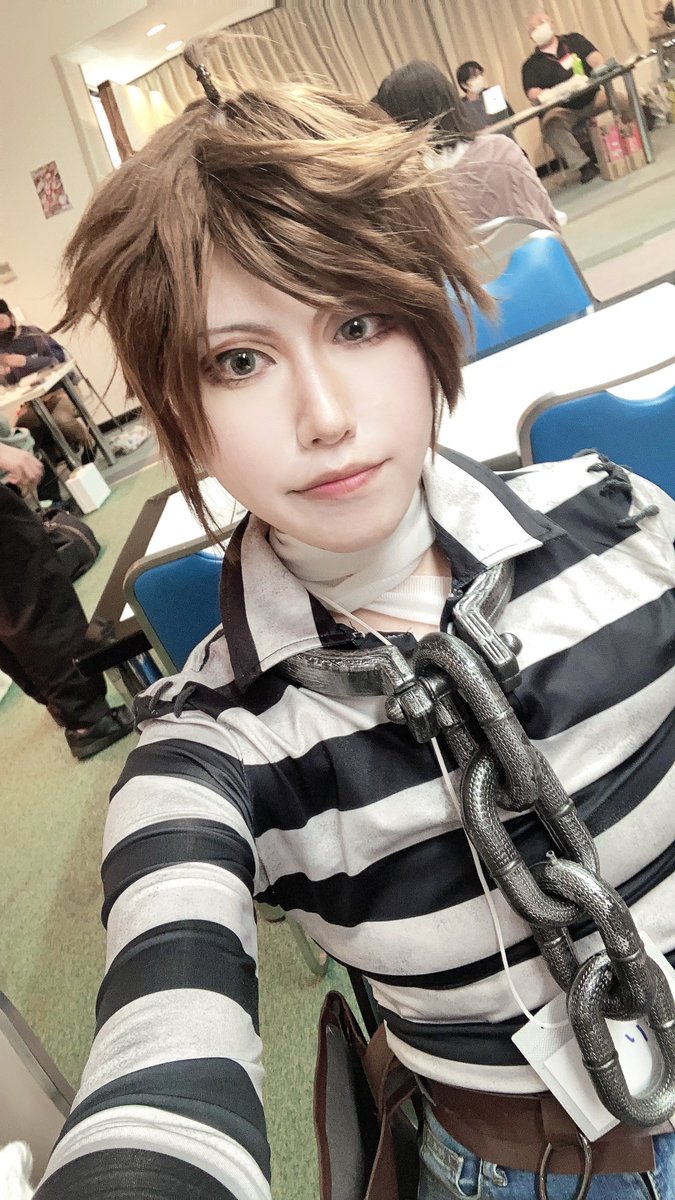 1 15 #コスプレイヤー代用選手権 岩融の黒い法衣を忘れたので同じ日に予定していた鶯丸のズボンを肩に下げましたね 22/10/25 17:45