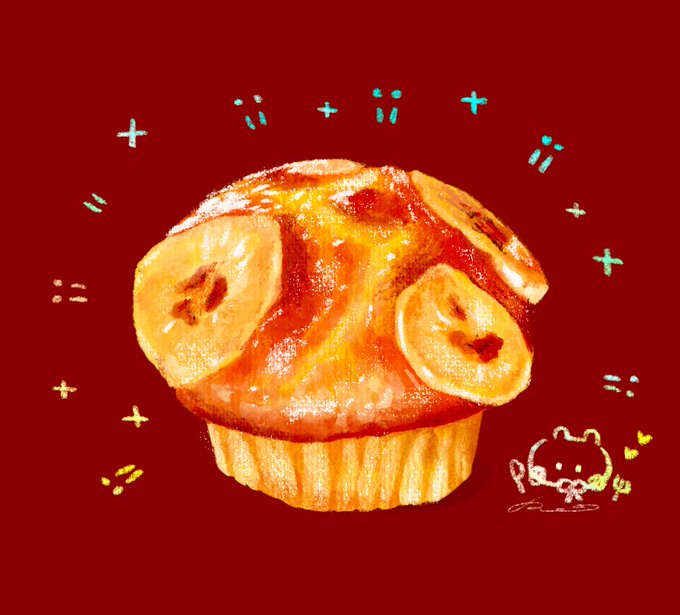 スタバのバナナの米粉マフィン🧁 #イラスト #イラスト練習 #食べ物イラスト #お絵かき #模写