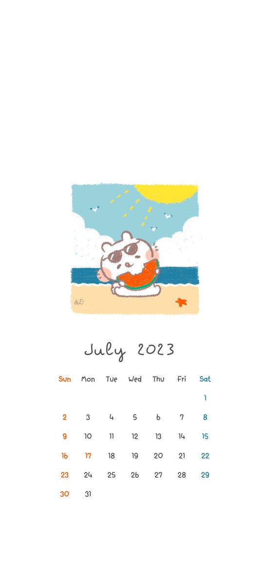 0 3 🍉7月カレンダー配布中🍉 個人利用の範囲でご自由にお使いください☺️☀️ #イラスト 23/07/01 13:35
