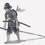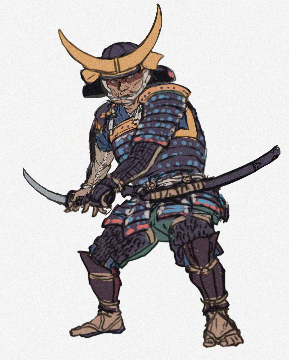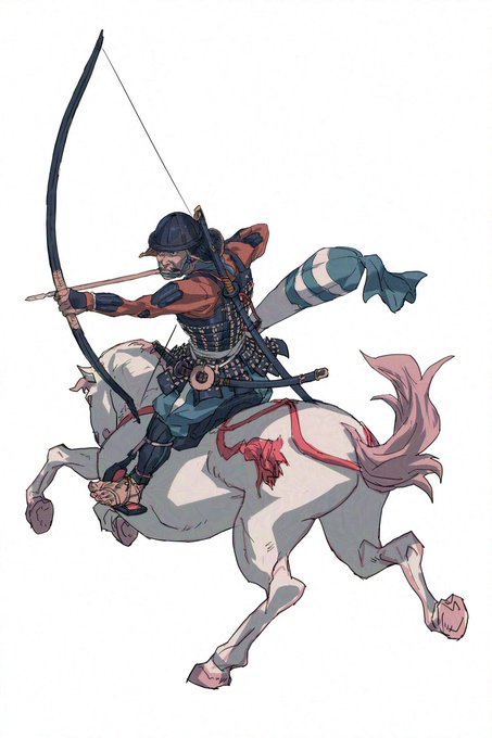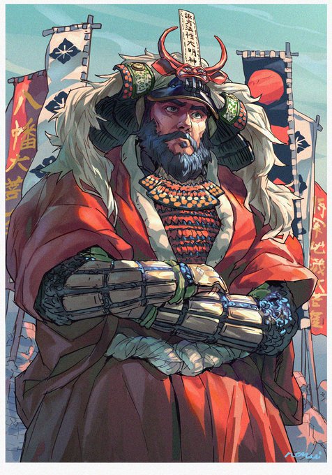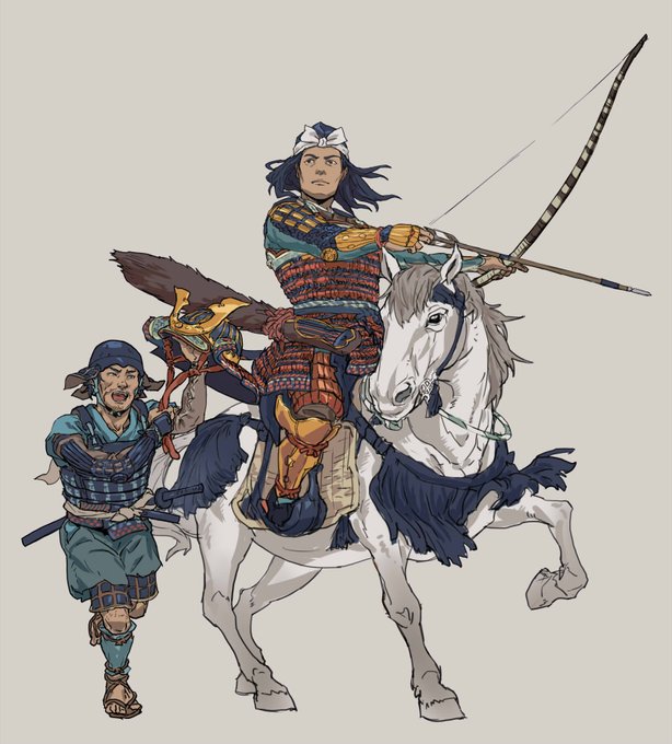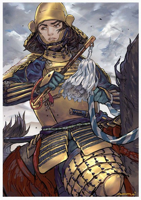 高杉晋作が着ていた甲冑(現存)が好みで描いた絵。 幕末の志士がしっかり甲冑着てるのも意外だったし、銃や大砲が使われる時代にこんな復古調の甲冑、烏帽子形兜の組み合わせで挑んでいたというのがいい!
