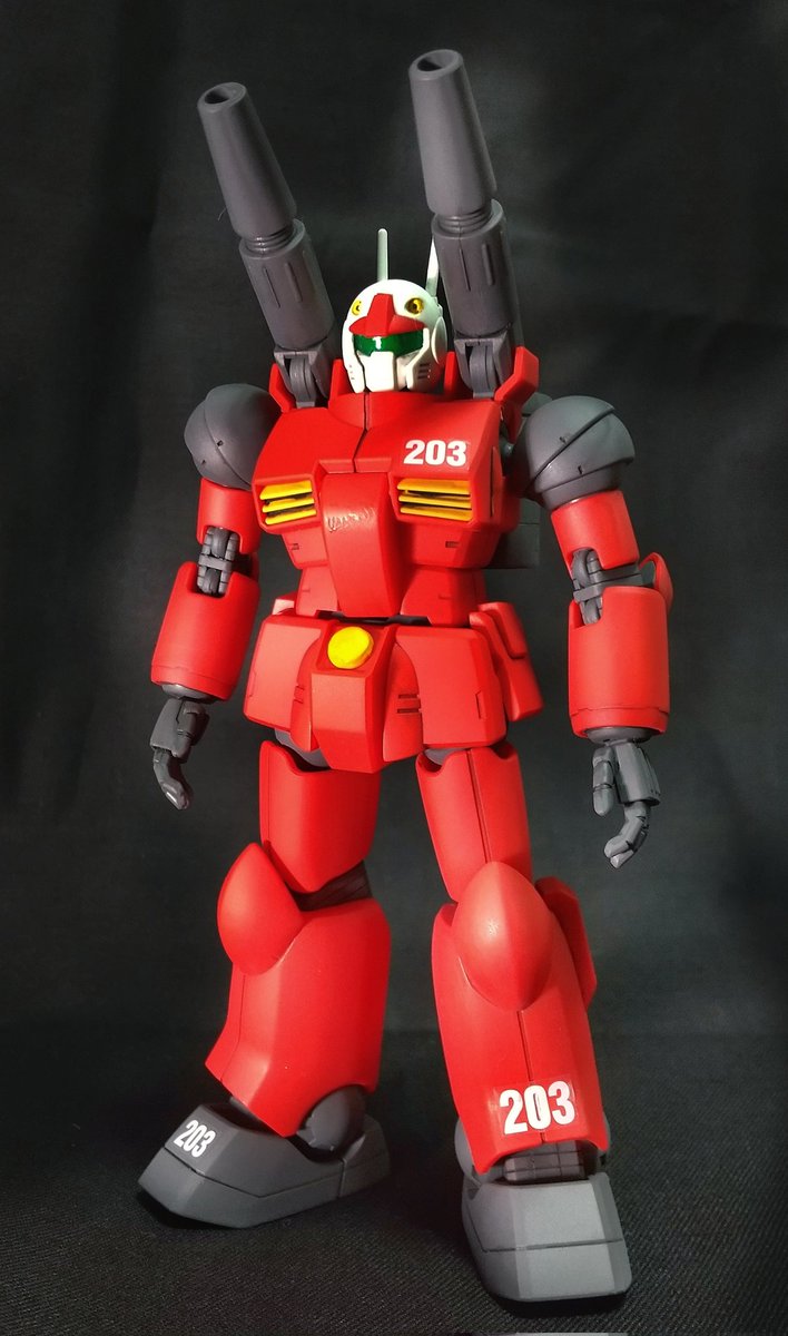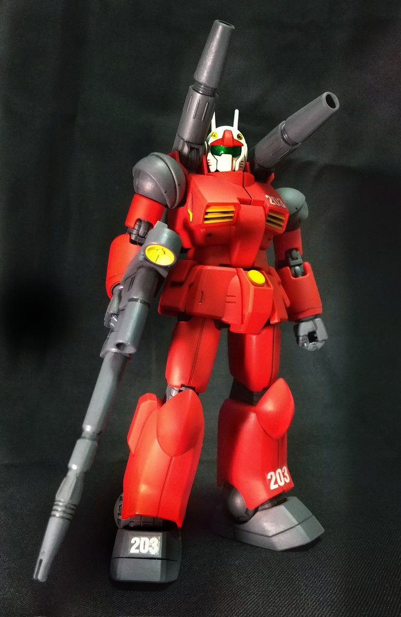 【完成】 HG 1/144 RX-77-2 ガンキャノン 今年最速の3日で完成!✨ 表面ヤスリ掛け→筆塗装→スミいれ→艶消しクリアです。機体番号、謎多き「203」号にしました! #ガンプラ好きと繋がりたい
