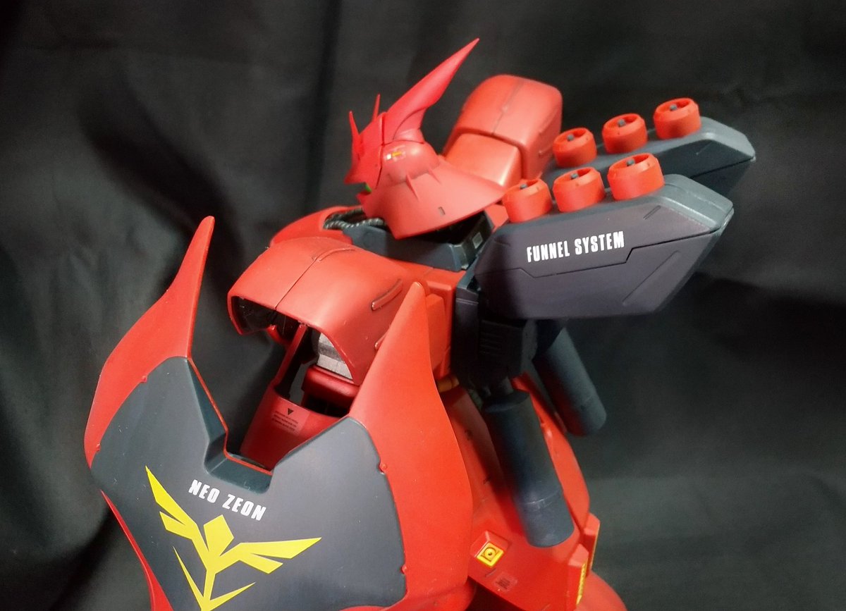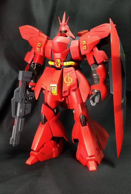 【完成】 MG 1/100 MSN-04 サザビー パーツ破損取寄せもあり、完成まで時間掛かりました💦もう22年前のキットなんですね…表面処理の筆塗装して艶消しクリア締めです。ポロリしやすいので、ポーズおとなしくしてます(笑) #ガンプラ好きと繋がりたい