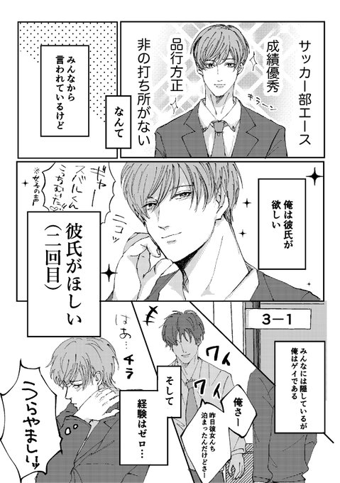 523 8201 #GWはフォロワーさんが増えるらしい 創作BL⚠︎︎再掲 「イケメン優等生と後輩くんがマッチした話」1/2 22/05/02 21:55