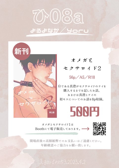 9 47 4月2日のJ庭のお品書きです❤ #創作BL #J庭53 twitter.com/yoru_0315/stat… 23/03/30 18:23