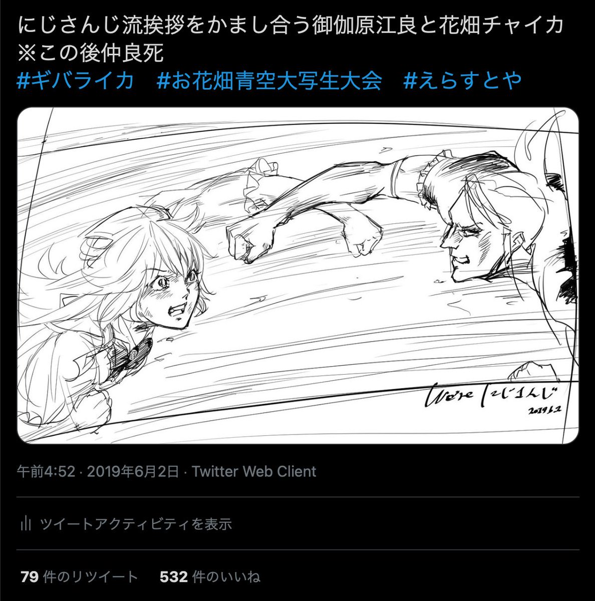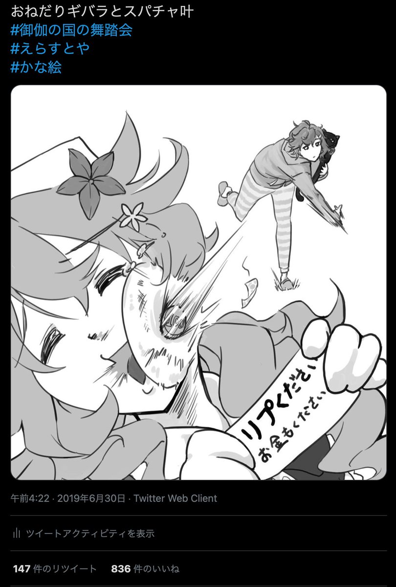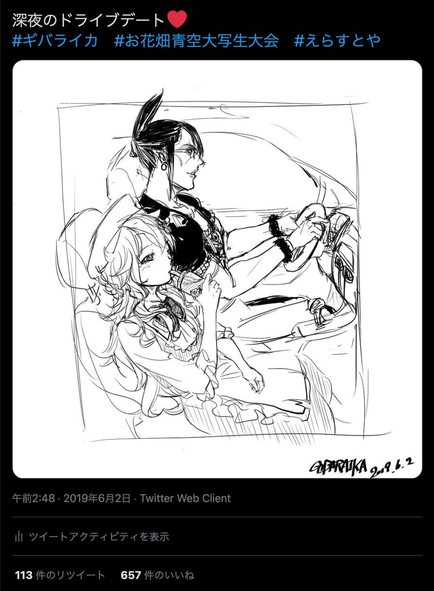12 43 ギバライカでGTAコラボしてた時の絵 今までに無いくらい反応貰えて嬉しかったやつ #えらすとや 21/03/31 22:02