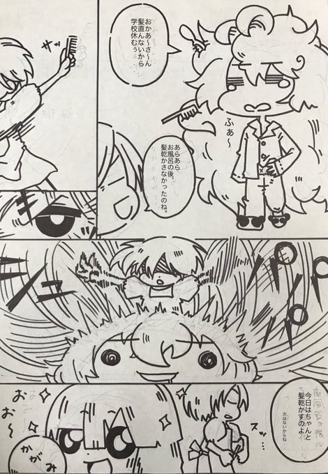 1 1 髪の毛を乾かさずに寝てしまったののさん。 #オリキャライラスト 23/04/26 12:13