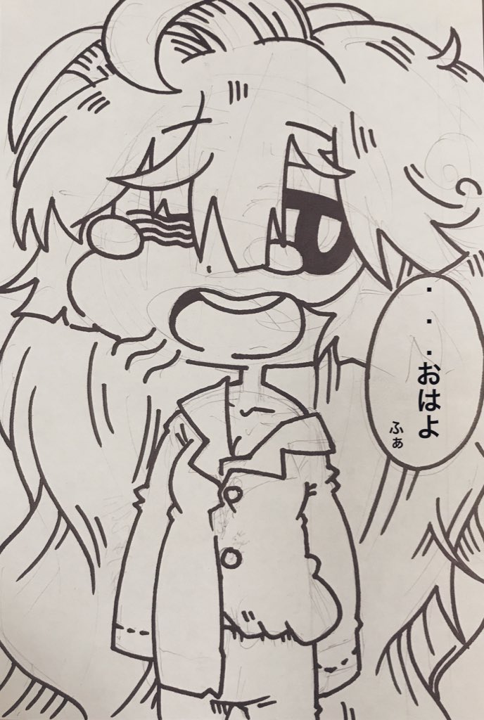 髪の毛を乾かさずに寝てしまったののさん。 #オリキャライラスト