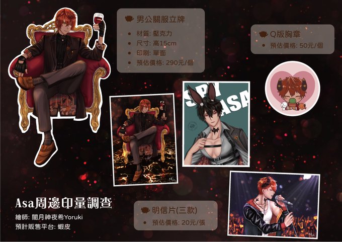 #ArtforAsa 大家好~這陣子規劃好製作幾項Asa的同人周邊,價格大致定好了,想先確定好數量再請廠商製作,有意願購買的話可以幫我填個表單喔~ 原則上之後會使用蝦皮作為交易平台,可能也會推出套組會稍微划算一些~ *注意: 只是印量調查,非正式購買表單 docs.google.com/forms/d/e/1FAI…
