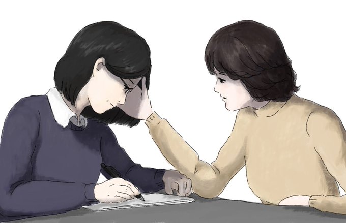 出勤途中、キュンキュンしてしまった!!こんな日常さえも百合変換してしまう私って… みなさんの日常百合(目撃)体験知りたい…絵にしてキュンキュンしたい… #創作百合 #年の差 #大人百合 #イラスト