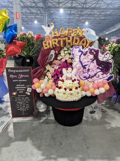 80 239 夜見れなちゃんへ! HappyBirthday! & にじFesご出演おめでとうございます! はと一同よりお祝いのフラスタを贈らせていただきました! はとのみんなで作ったフラスタ、めちゃかわいです! 次ツイにイラスト担当様のご紹介をいたします #夜見れな誕生祭2021 #れなの鳥っくあーと #にじFes2021 21/02/27 10:04