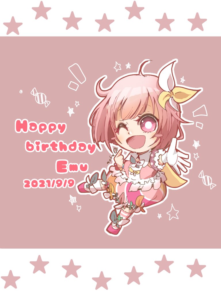 8 44 🍬🎂えむちゃんお誕生日おめでとう🎂🍬 いつもわんだほいなえむちゃんに心奪われてるよ🥰 #鳳えむ誕生祭2021 #prsk_FA 21/09/09 00:00
