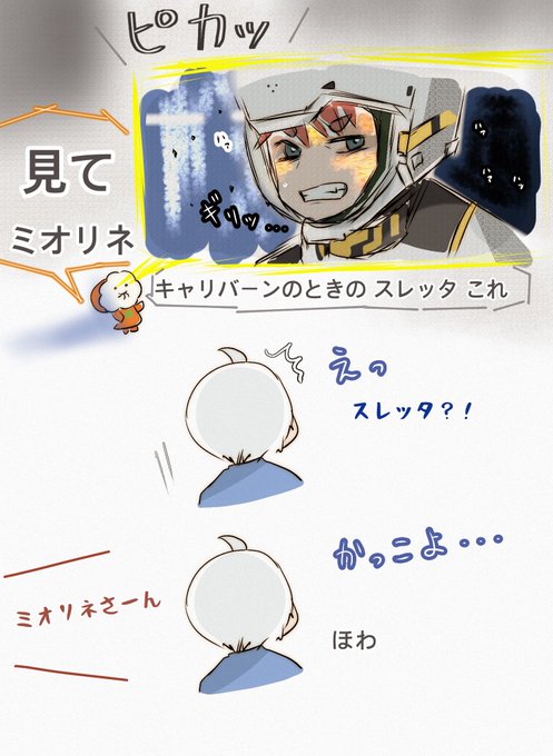 32 156 このあと しばらくあそんでて メシが冷めるから早く来いと おこられる2人 #水星の魔女 #スレミオ 23/08/04 22:58