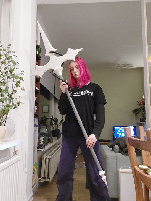 It's been a good couple of months for #propmaking. Learned A LOT (just see my Lyn bow it sucked) and am proud of the results so far 🔥 #IceLance is part #3Dprint, part #evafoam and #EngulfingLightning is full eva foam with a wooden rod inside. #GenshinImpact #cosplay #WIP