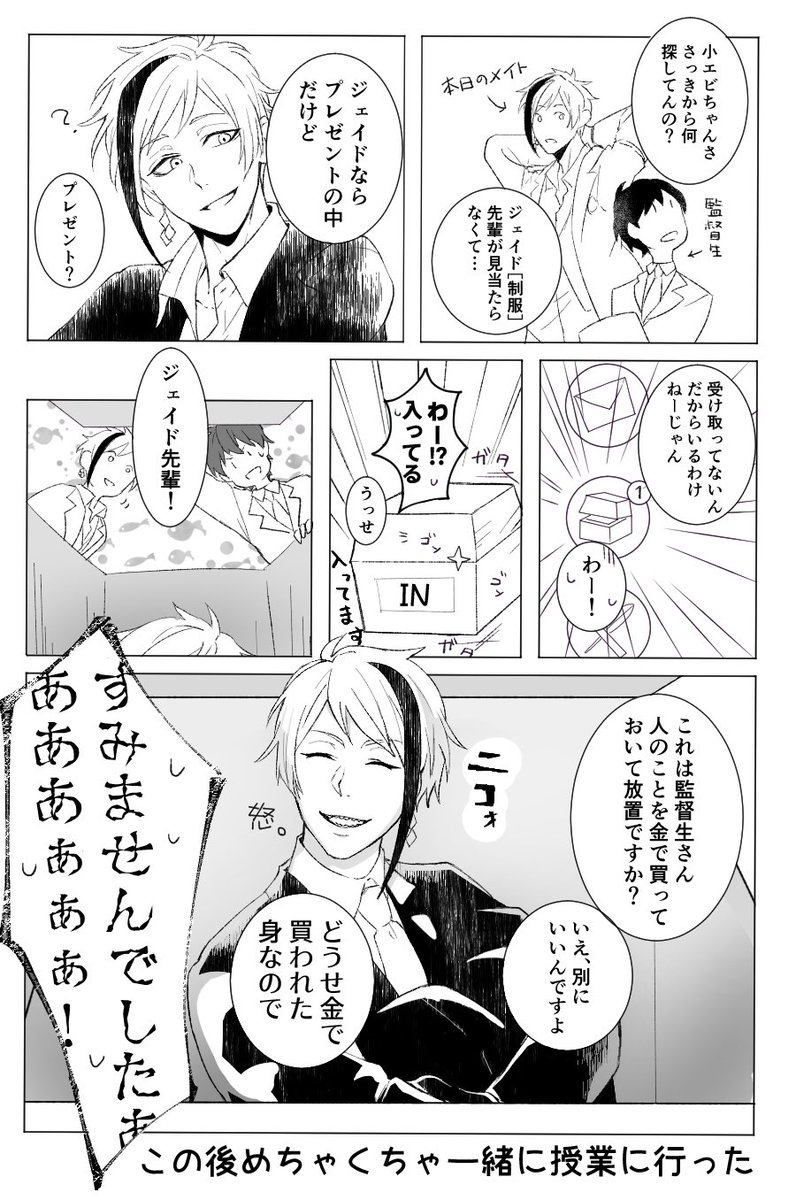37 281 受け取り忘れちゃってごめんねジェイド先輩… ※監督生顔あり #twstファンアート 20/06/16 08:16