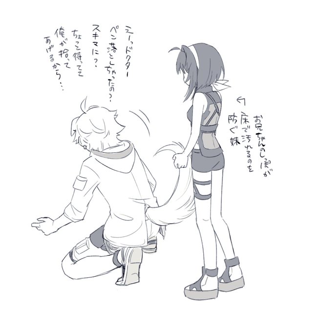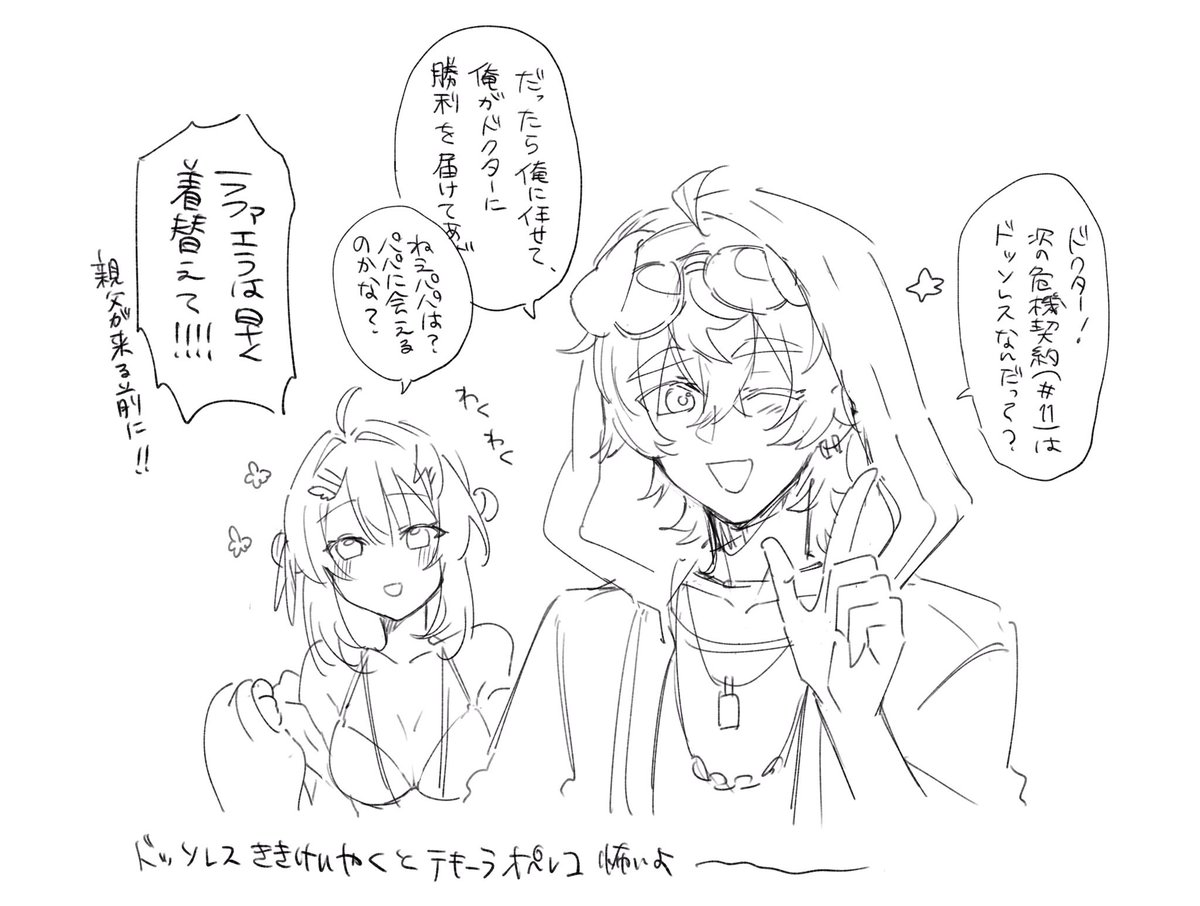 これは俺ドクターくんとお兄ちゃんの打ち合わせに混ざりたいラプルマちゃんを描きたかったらしいラフ