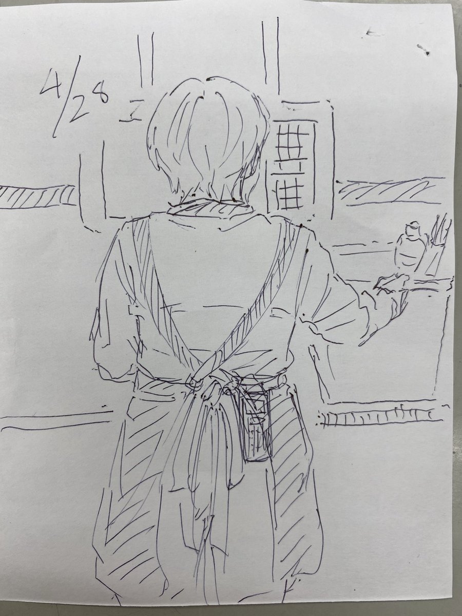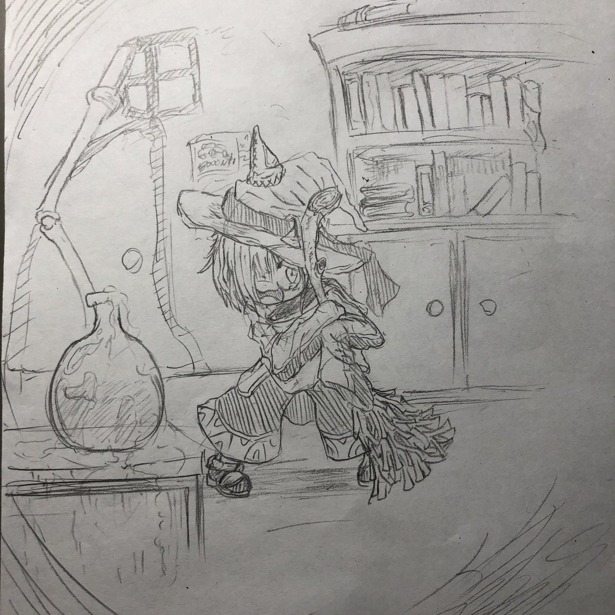 今日のバイトの暇な時間に少しずつ描いた落書き