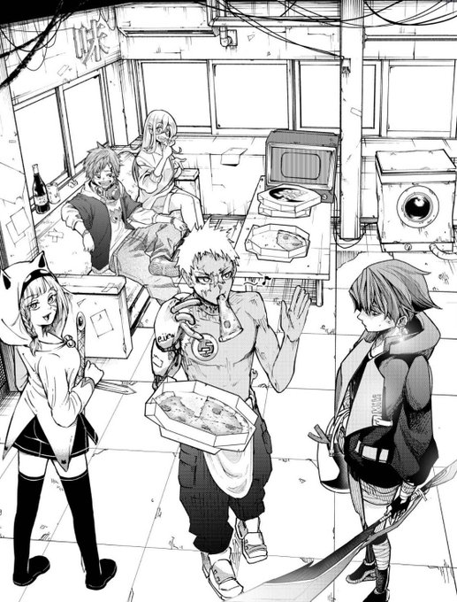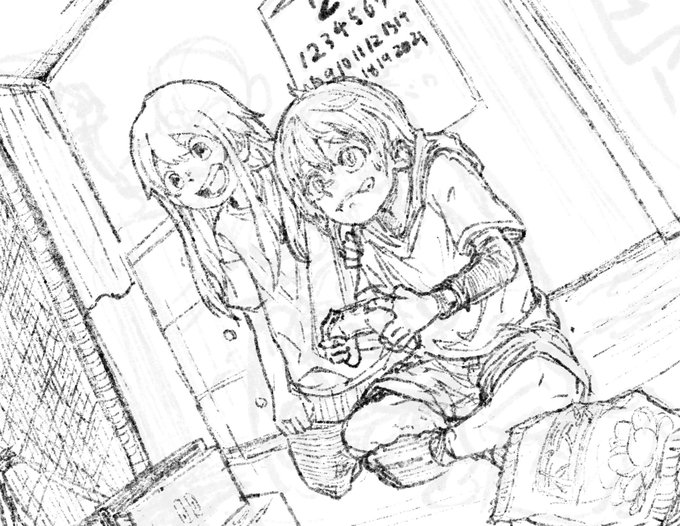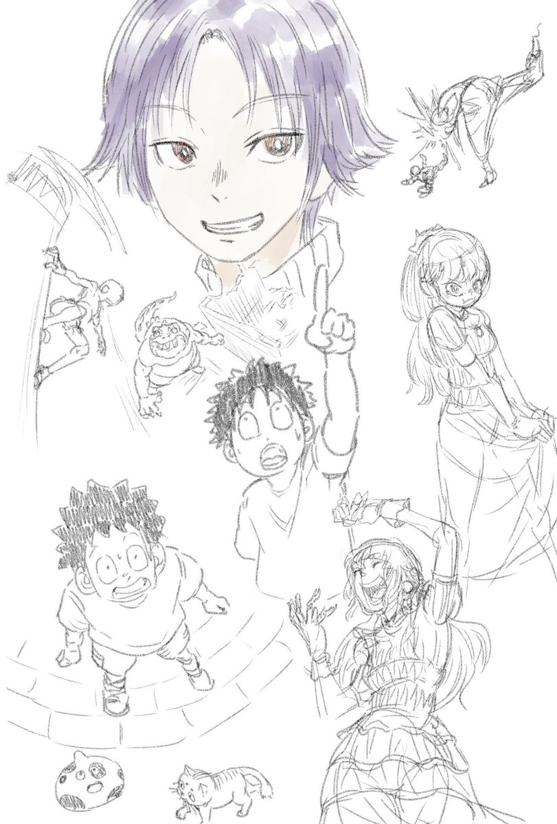 1 6 この前アシスタント先のスタッフさんと共同で絵を描きました。 僕は座ってる男の子を描いた! 23/04/02 09:42