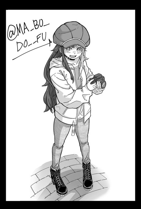 カメラで風景を撮りに来てるマボを 描きました。 #まぼ絵 ✞✟@MA_BO_DO__FU 📸