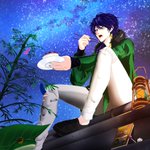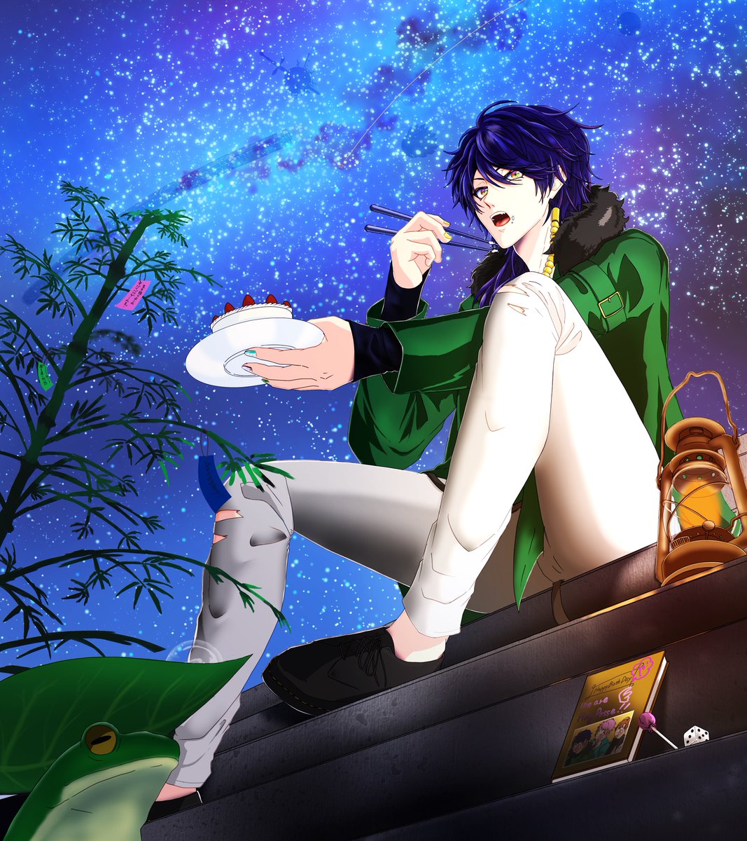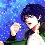 #有栖川帝統誕生祭2023 #有栖川帝統生誕祭2023 🍭「なんでフォークもあるのに箸で食べてるのさ〜!」 🎲「箸もフォークも洗うの勿体ねぇじゃん?」 📕「まあまあ、手で鷲掴み、ではなかったので良しとしましょう」
