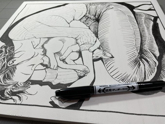 やきいも #ペン画 #イラスト #漫画 #アナログ #ウッドカンバス #創作 #宇宙 #冬の大三角 #焼き芋 pixiv.net/artworks/10456…